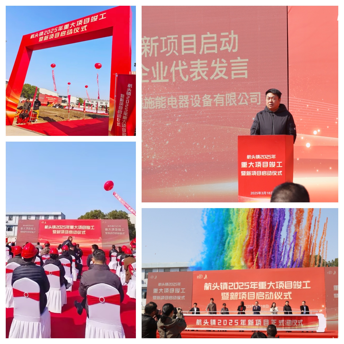 活動現(xiàn)場氣氛熱烈,紅色拱門、飄揚(yáng)氣球與整齊陣列的嘉賓共同見證重要時刻。舞獅表演、旗幟舞動等環(huán)節(jié)點燃現(xiàn)場氛圍,隨后,領(lǐng)導(dǎo)嘉賓共同登臺啟動新項目,彩色煙幕騰空而起,標(biāo)志著施能電器新廠區(qū)建設(shè)正式開工。儀式匯聚政府相關(guān)部門、企業(yè)代表及行業(yè)同仁,共同展望項目未來發(fā)展。