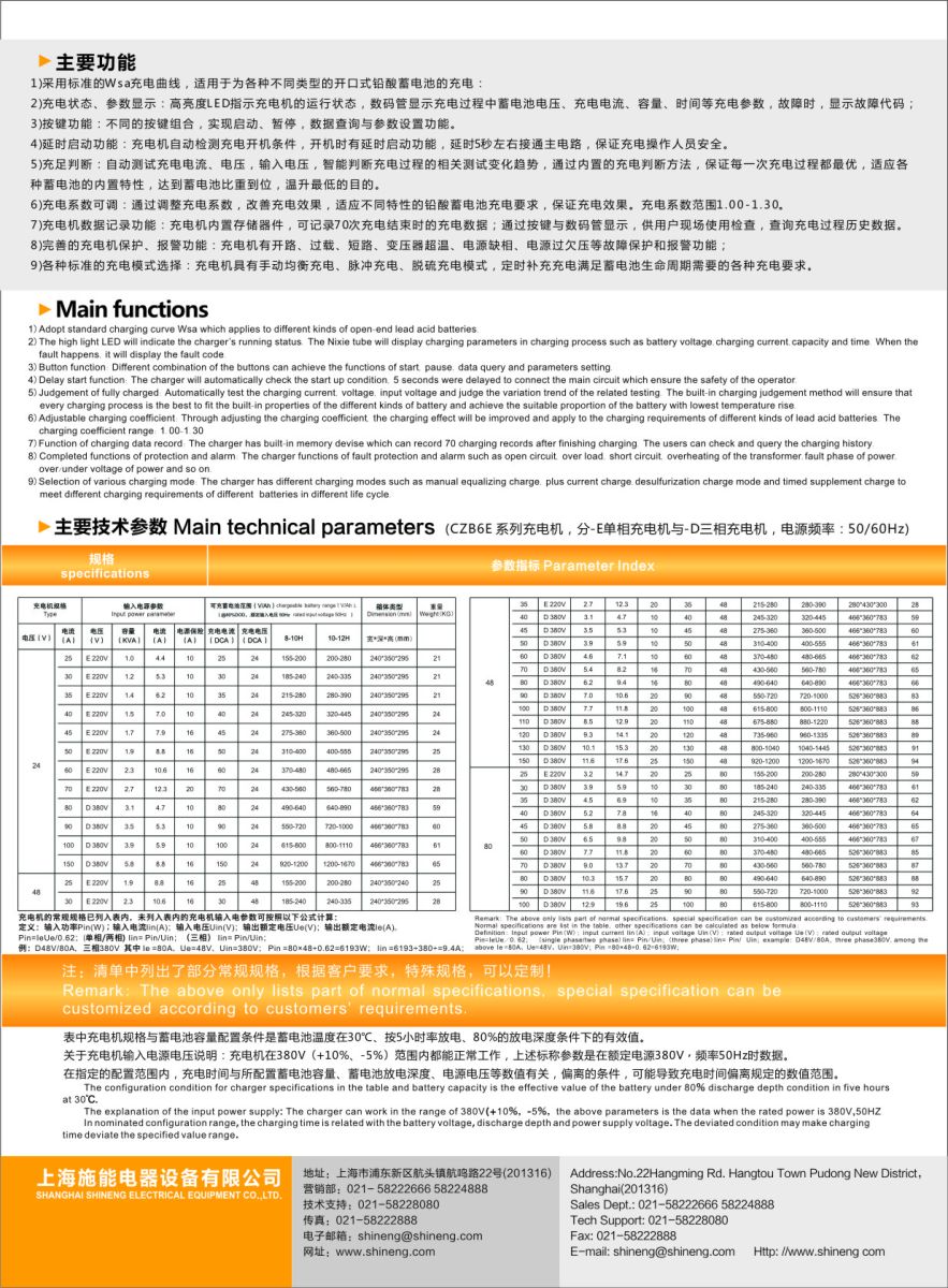 CZB6E系列充電機(jī),主電路使用可靠的漏磁變壓器與整流二極管,通過(guò)充電控制器,實(shí)現(xiàn)標(biāo)準(zhǔn)的Wsa充電控制;充電控制器內(nèi)的充電曲線,采用優(yōu)化的充足判斷方式,滿足各種不同特性的蓄電池在各種應(yīng)用工況下的充電要求。