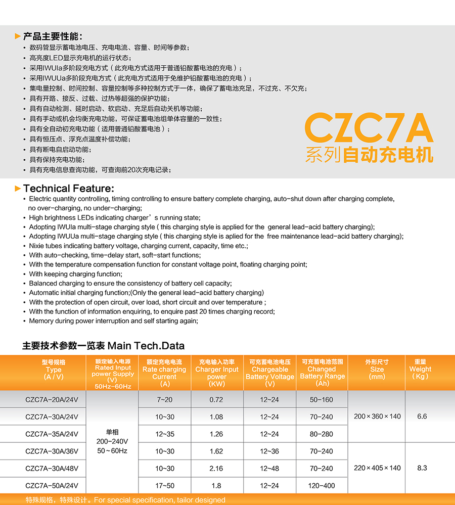 CZC7-300W車(chē)載內(nèi)置充電機(jī)系列自動(dòng)充電機(jī)是一種造型新穎、功能強(qiáng)大、技術(shù)先進(jìn)的高新技術(shù)產(chǎn)品。具有體積小、重量輕、操作簡(jiǎn)便、充電效率高、可靠性強(qiáng)等特點(diǎn)。它將高頻電子技術(shù)和微機(jī)控制技術(shù)相結(jié)合,控制充電機(jī)按設(shè)置的充電曲線(xiàn)充電。使蓄電池得到較好的充電效果,延長(zhǎng)蓄電池組的循環(huán)壽命。整個(gè)充電過(guò)程按程序自動(dòng)進(jìn)行,無(wú)需人員值守。