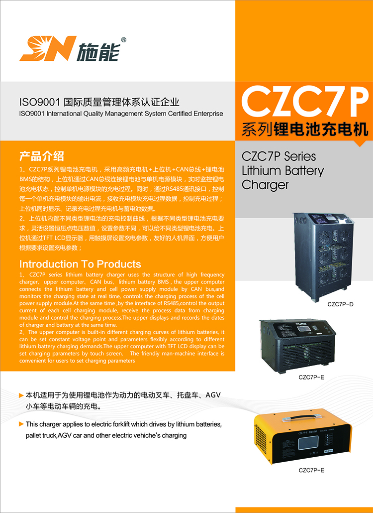 適用于為使用鋰電池作為動(dòng)力的電動(dòng)叉車、托盤車、AGV小車等電動(dòng)車輛的充電。