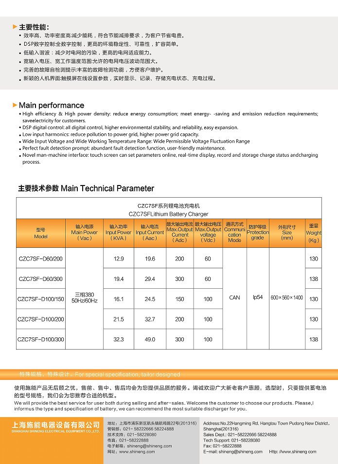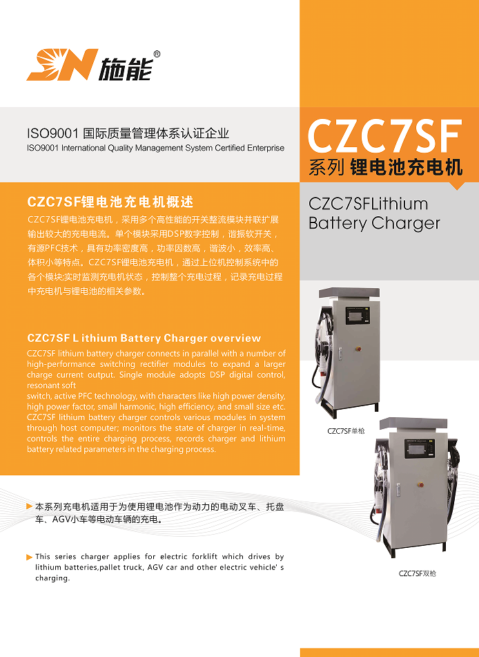 CZC7SF鋰電池充電機,采用多個高性能的開關(guān)整流模塊并聯(lián)擴展輸出較大的充電電流。單個模塊采用DSP數(shù)字控制,諧振軟開關(guān),有源PFC技術(shù),具有功率密度高,功率因數(shù)高,諧波小,效率高、體積小等特點。CZC7SF鋰電池充電機,通過上位機控制系統(tǒng)中的各個模塊;實時監(jiān)測充電機狀態(tài),控制整個充電過程,記錄充電過程中充電機與鋰電池的相關(guān)參數(shù)。